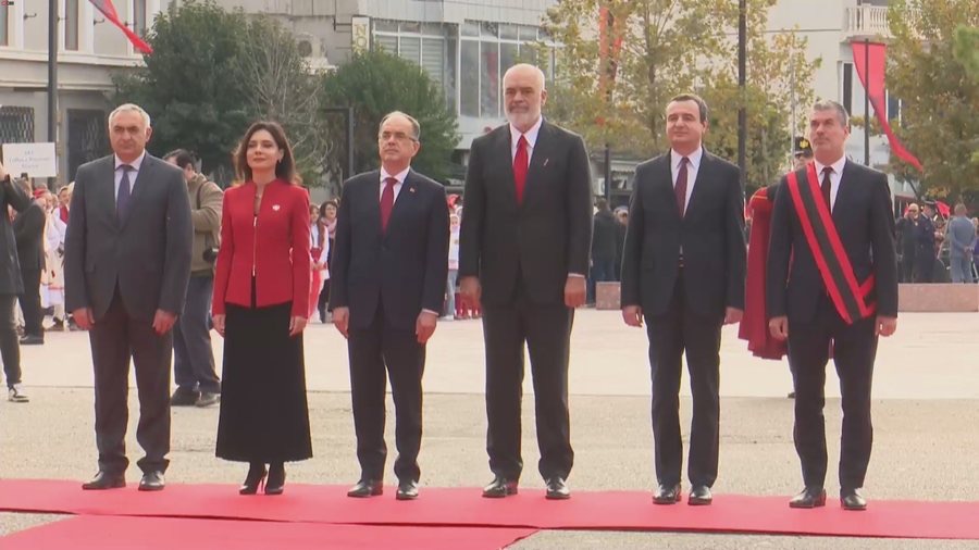Presidenti shqiptar Bajram Begaj, kryeministri Edi Rama dhe kryeministri i Kosovës Albin Kurti, por edhe kryeparlamentarja Elisa Spiropali dhe kryebashkiaku i Vlorës, Ermal Dredha pas këndimit të Himnit Kombëtar, kanë vendosur kurora me lule pranë Monumentit të Pavarësisë në Sheshin e Flamurit.